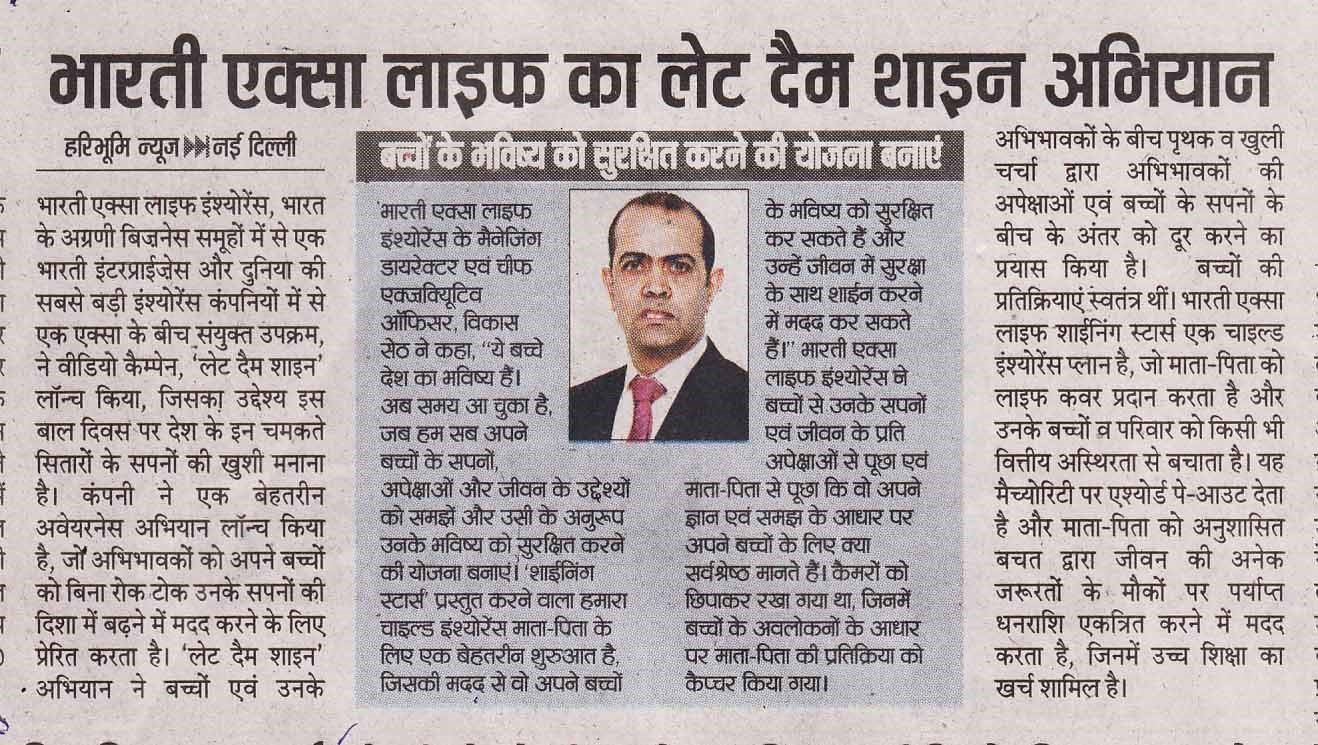 BHARTI AXA LIFE INSURANCE LAUNCHES ‘LET THEM SHINE’ CAMPAIGN TO CELEBRATE DREAMS OF SHINING STARS ON CHILDREN’S DAY