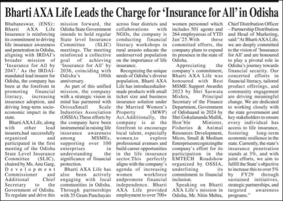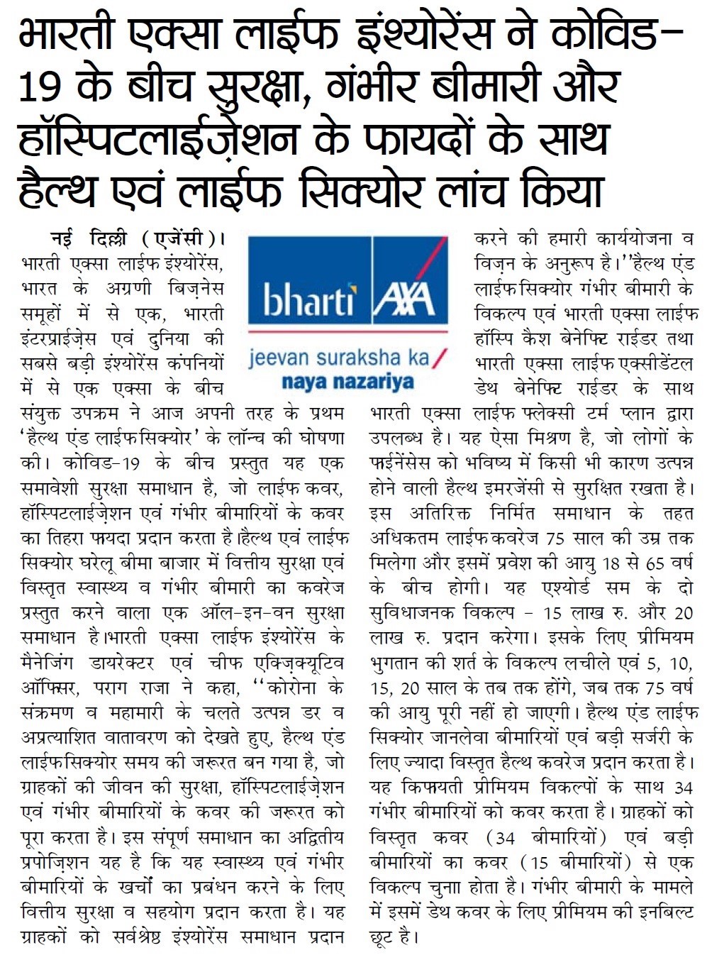 BHARTI AXA LIFE INSURANCE FORGES BANCASSURANCE PARTNERSHIP WITH SHIVALIK SMALL FINANCE BANK