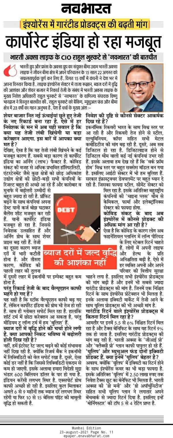 BHARTI AXA LIFE INSURANCE APPOINTS RAHUL BHUSKUTE AS CHIEF INVESTMENT OFFICER