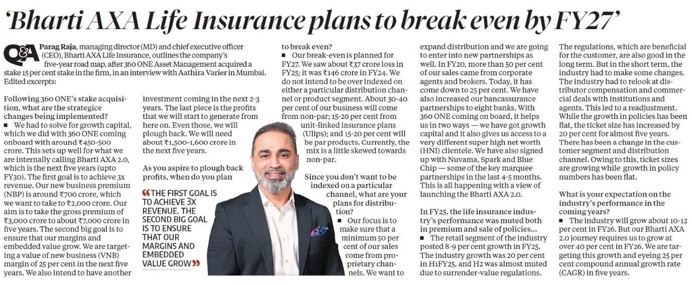 Bharti AXA Life Insurance H1 New Business surges 52% at 398 crore in FY2018-19